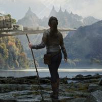 dark hair and is wearing what looks like traditional or fantasy-style clothing, which adds to the narrative quality of the image.