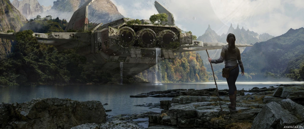 looking structure that appears to be part of a larger ruin or artifact, possibly indicating a historical or fantasy setting. The environment suggests a tranquil yet mysterious atmosphere. The person has
