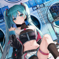 an animated character with turquoise hair and a distinctive style. She is wearing a black jacket with
