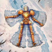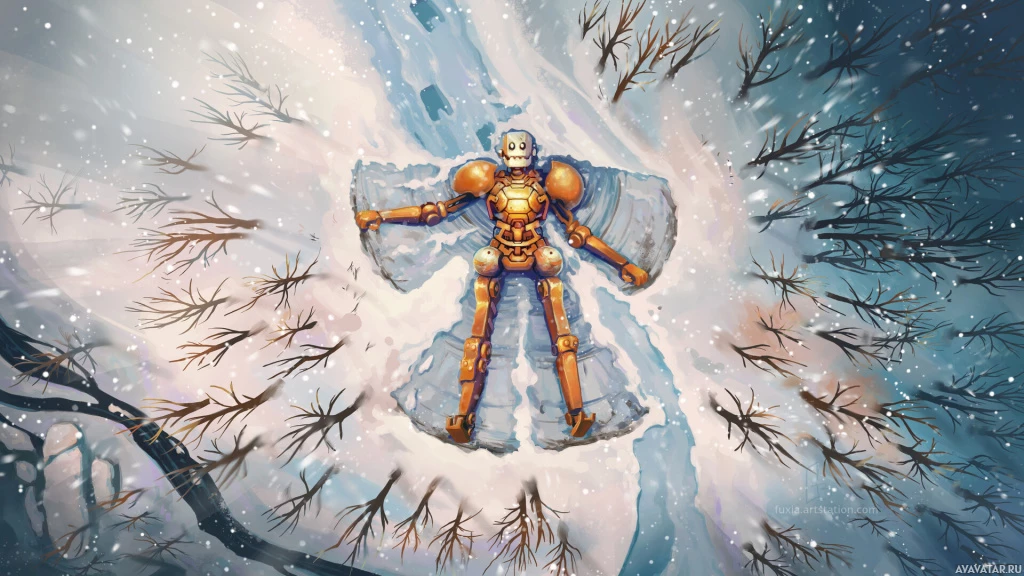 a snowy landscape. The robot appears to have