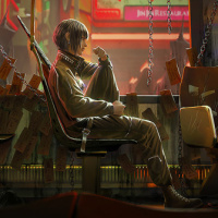 an animated girl at the center. The setting seems to be a room that could be part of a larger establishment such as a restaurant or cafe. There are