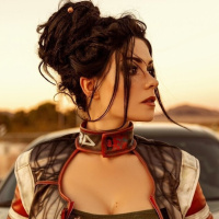 The image features a person dressed as Panam Palmer from