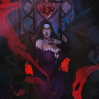 The image depicts a fantasy-themed illustration of a vampire character. The vampire is shown in an ominous and dramatic pose, with red accents that could represent blood or energy, set against a dark background that suggests a Gothic or supernatural atmosphere.