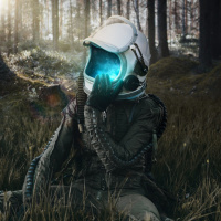 a dramatic effect on the scene. The juxtaposition of an astronaut in a forest creates