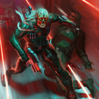 the armed character. The overall vibe of the image is intense and dramatic, indicative of