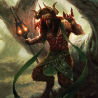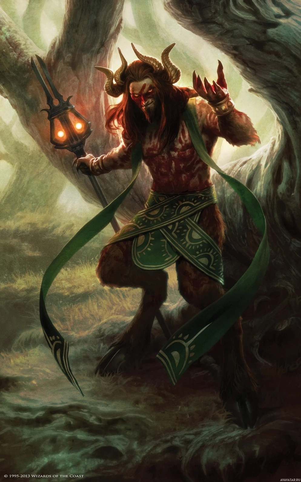 a fantasy character that appears to be a satyr. This creature is often associated with mythology and is typically portrayed as having the upper