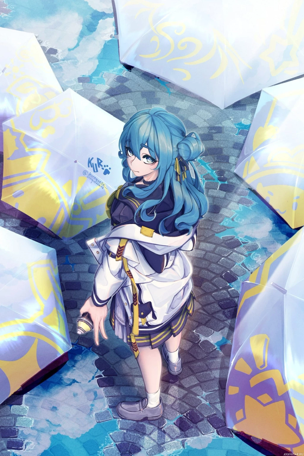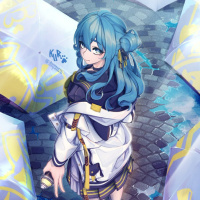 На картинке изображен анимационный персонаж, девушка с голубыми волосами и в белом наряде. Кажется, что она оглядывается на свое окружение, возможно, входя в новую среду или исследуя ее, которая заполнена чем-то похожим на разрушающиеся сооружения или ледяные образования с замысловатыми узорами. Обстановка наводит на мысль о фэнтезийной или постапокалиптической атмосфере.