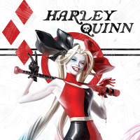various adaptations. The artwork captures the essence of Harley Quinn's iconic image within the world of comic books and