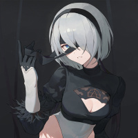 a female character from the video game "Nier: Automata." The character is depicted with a sleek and modern design, wearing