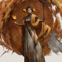 circular pattern that might represent leaves or petals, complementing the fantasy motif of the artwork. The overall style is detailed with a blend of realism and fantastical elements, typical in high-quality