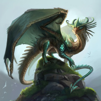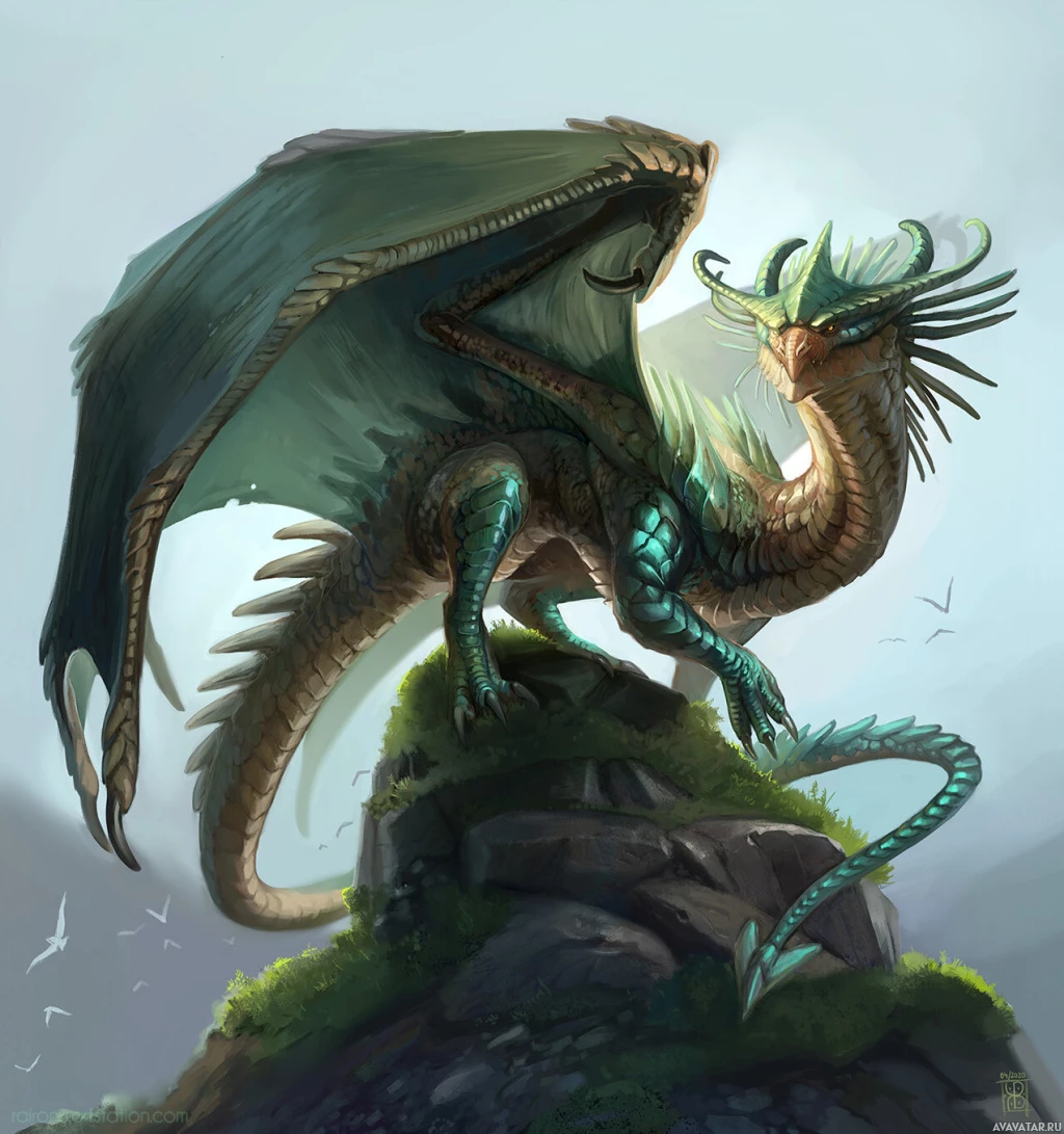 a fantasy dragon. It is a detailed and colorful illustration showing the dragon perched on