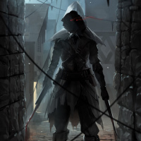 underground tunnel. The character is holding a sword and has a hood covering their head, suggesting they might be part of