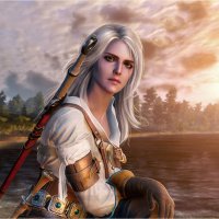 a serene atmosphere that contrasts with Ciri's focused demeanor.
