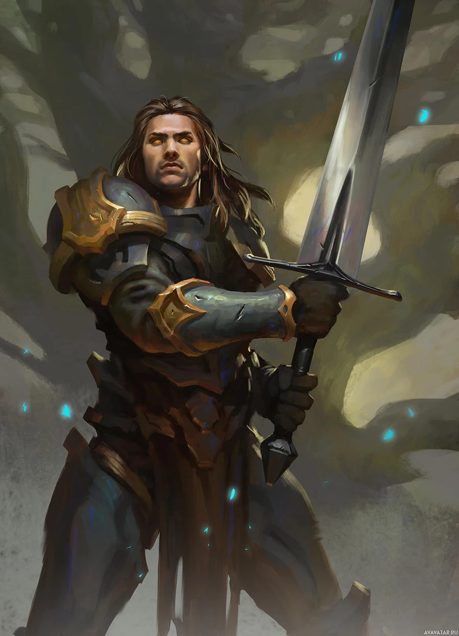 The image shows a warrior wielding a sword. He appears to be standing in