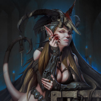 The image depicts a fantasy-themed character that appears to be a demon or some form of