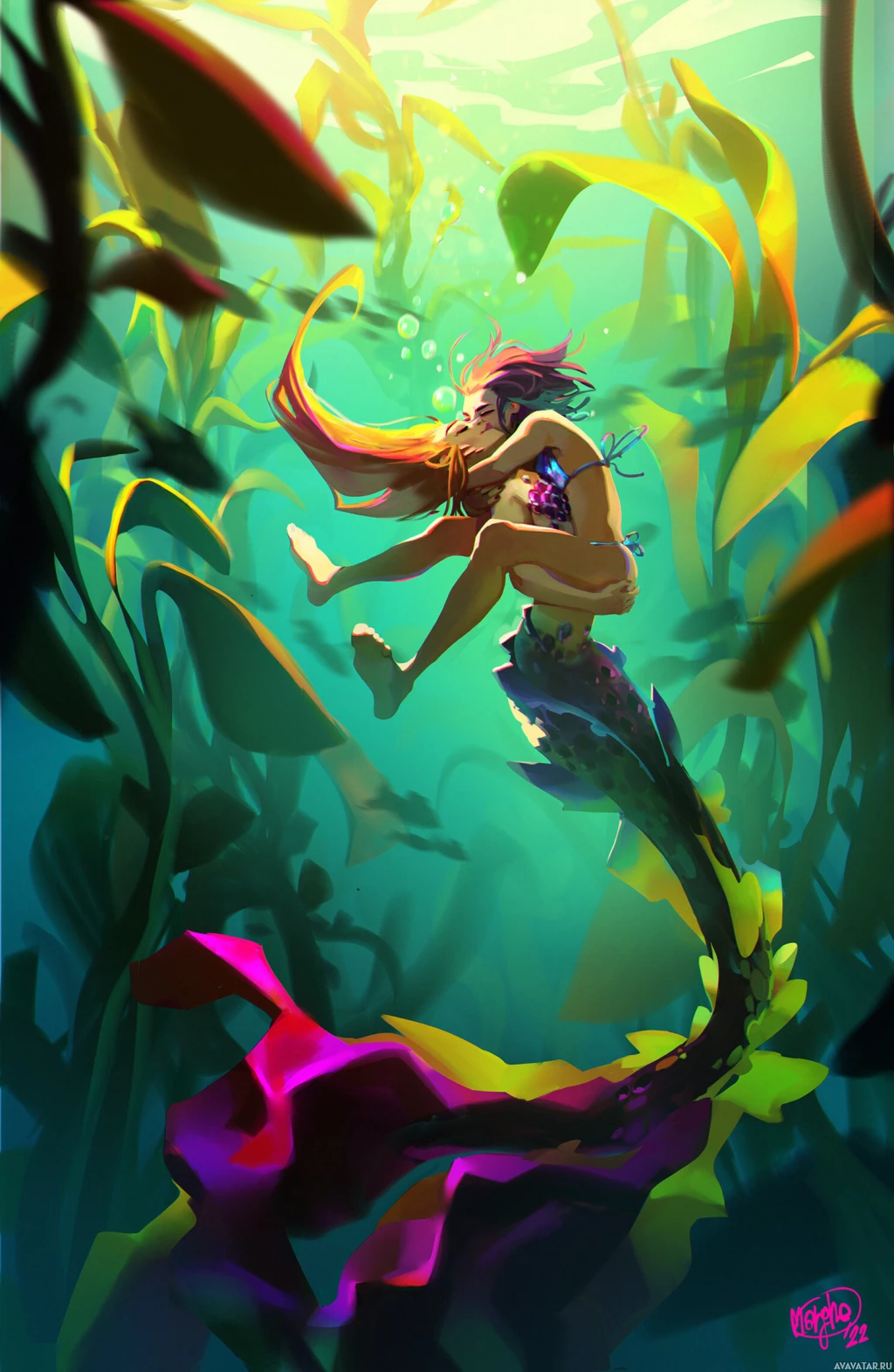 a mermaid character, highlighting elements often associated with fantasy and magical realms.
