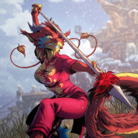 The image depicts a character who appears to be a blend of human and dragon elements, often referred to as a "kitsune" in