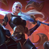 a female warrior with white hair and an intense expression. She is wearing armor that includes