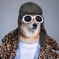 aviator gear. The dog also has on a leopard