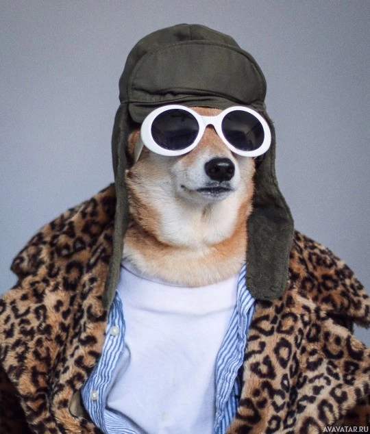 print coat or jacket. This image has been edited to add the human-like clothing and accessories, giving the dog a distinctly stylish and playful appearance.