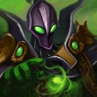 a greenish hue with what appears to be corrupted foliage, which adds to the fantasy element of the artwork.
