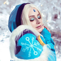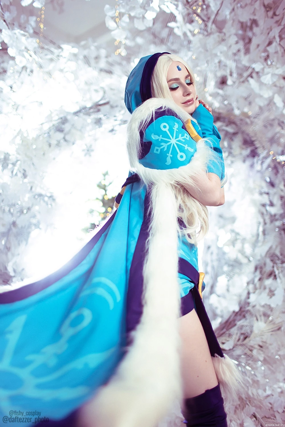The image features a person dressed in costume inspired by the Crystal Maiden character from