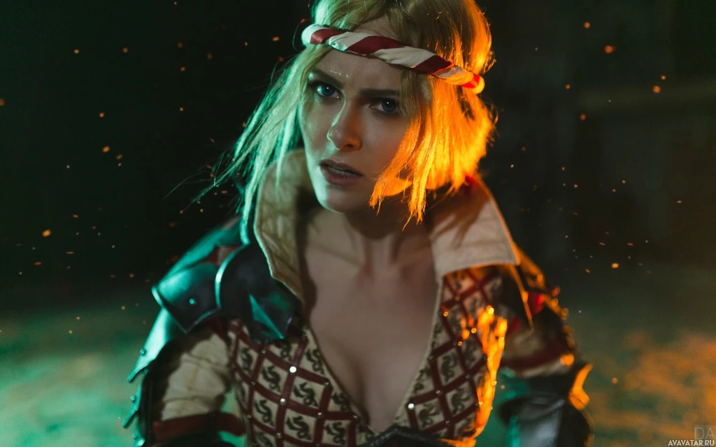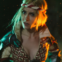 the video game "The Witcher 3: Wild Hunt." The costume is detailed, with visible