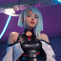 The image depicts a person dressed in an outfit that resembles the character Lucy from