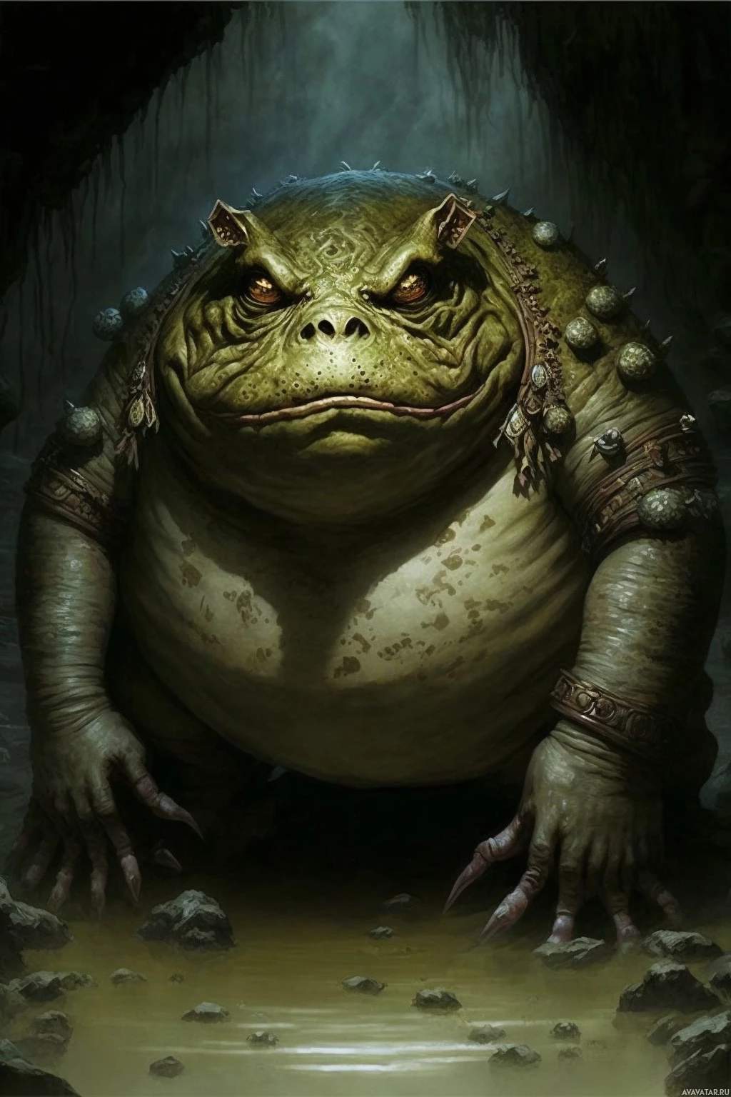 a fantasy creature that appears to be a combination of a hippopotamus and a humanoid figure. It has