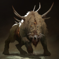 sharp teeth and claws, an intimidating presence, and possibly supernatural or monstrous qualities. The creature's design suggests it might be part of a story or game that includes elements of horror or the macabre.