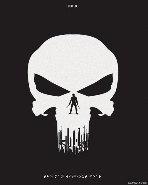 human figures, which likely represent the character's violent nature or the bodies he leaves behind as part of his vigilante justice. The text "Marvel" and "Netflix" indicate that this is related to the Marvel Comics series produced by Netflix. The inclusion of a sign