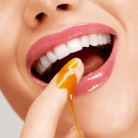 yellow substance that could be dripping onto the person's lips. The presence of these elements suggests that the image may be related to sensory experiences, flavors, or perhaps