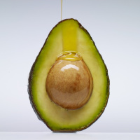The image shows an avocado being squeezed to extract its oil into a bottle. This is a representation of the process used to obtain avocado oil, which is known for its healthy monounsaturated fat content and other nutritional benefits.