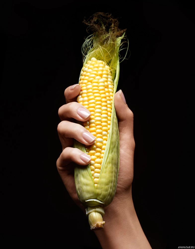На снимке изображена рука человека, держащая кукурузный початок, который является разновидностью овоща. В центре внимания - рука и початок кукурузы, фон размыт, что привлекает внимание к главному объекту съемки.
