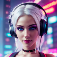a female character with white hair and wearing headphones. She appears to be listening intently to something, possibly music or audio from a device connected to the headphones. The background suggests