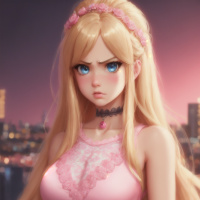 The image features an illustrated character that appears to be a girl with blonde hair. She is wearing a pink dress and has a surprised or shocked expression on her face.