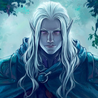 The image depicts a fantasy-themed character, reminiscent of the Dungeons & Dragons (D&D) game. The character appears to be an elven wizard or sorcerer with long