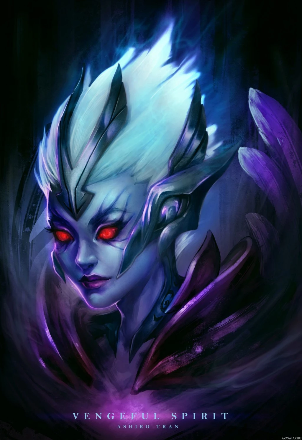 Vengeful Spirit," which appears to be from the game Dota 2. This character is stylized with a fantastical and menacing look, featuring