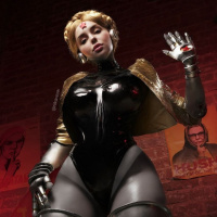 a video game or other media. The background suggests an industrial or underground setting, which fits well with