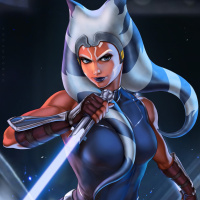 a female character who appears to be styled after the Jedi Ahsoka Tano from Star Wars. She is depicted wielding a lightsaber, which is consistent with the appearance of Jedi characters in