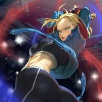 physical activity or combat within the context of the game she represents. Her pose and expression suggest agility and determination. The use of