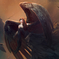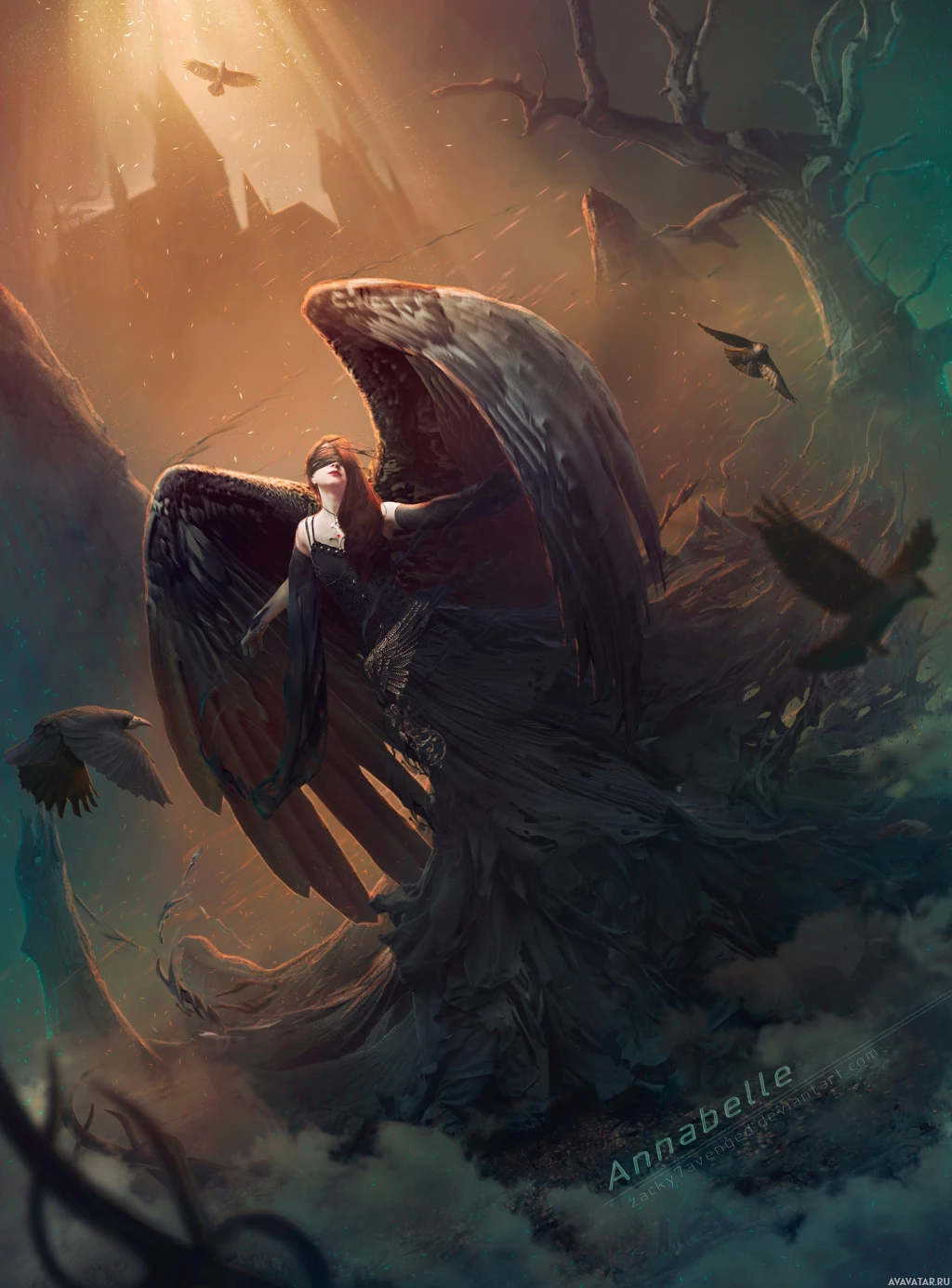 The image features a fantasy-themed artwork depicting a girl with wings. She appears to be an angelic or