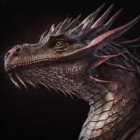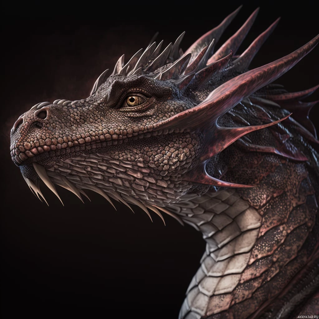 На картинке изображен дракон в стиле фэнтези с чешуей, шипами и, возможно, бронированными пластинами на шее. У него угрожающее выражение лица, и он расположен на темном фоне, который подчеркивает присутствие существа.