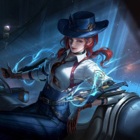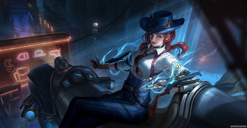 The image features a red-haired girl wearing a hat, possibly a cowboy or pirate-style hat. She is depicted in a fantasy or adventure setting, with