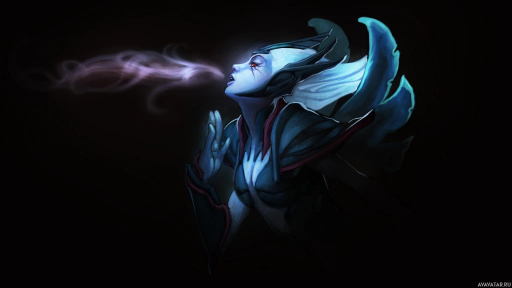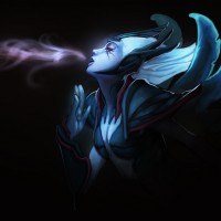 Vengeful Spirit, which is a playable hero in the game. She has a fantasy appearance with blue and purple