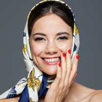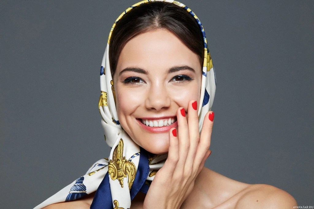 The image shows a woman wearing a headscarf with