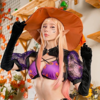 an elf costume, complete with ears and a tail. They are also dressed in lingerie that matches the elfin theme. The individual is sitting on what appears to be