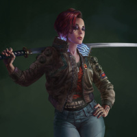 the video game "Cyberpunk 2077," which is known for its distinctive fashion and character designs.