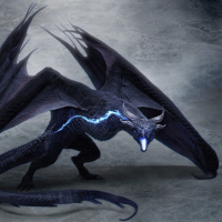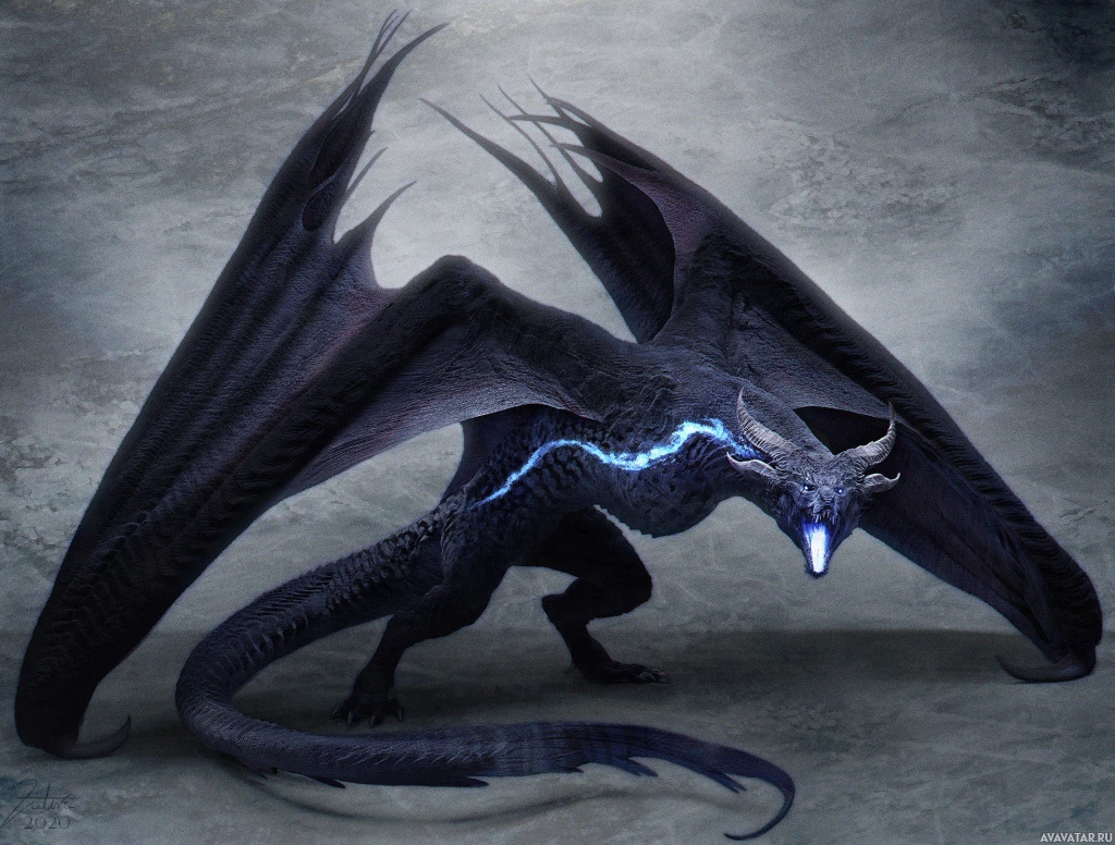 a fantastical creature that resembles a dragon. It has wings, horns, and is standing on what appears to be