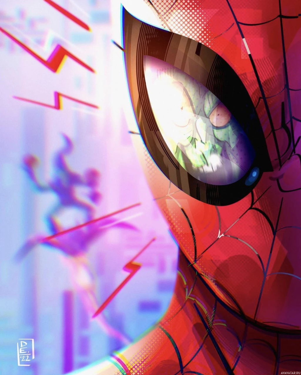 an illustrated character that appears to be Spider-Man, a well-known comic book superhero. The style of the illustration is reminiscent of pop art, with bold lines and